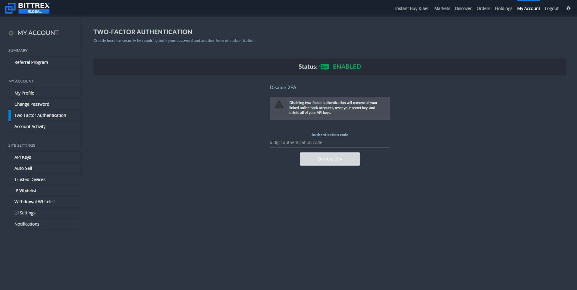 On this crypto exchange, you’ll also be required to establish 2 Factor Authentication for extra security on your account.