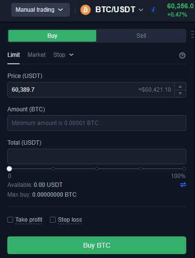 - 60 USDT after completing crypto to crypto trading transactions worth 100 USDT.