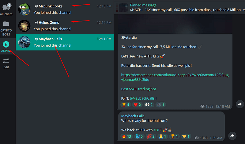3. Join Top-Performing Channels: Once you’ve found a channel with solid results, join it! You can also organize all of your alpha channels into folders on Telegram, making it easier to follow calls from multiple sources. This way, you’ll stay up to date with the latest coin calls and won’t miss any important signals.