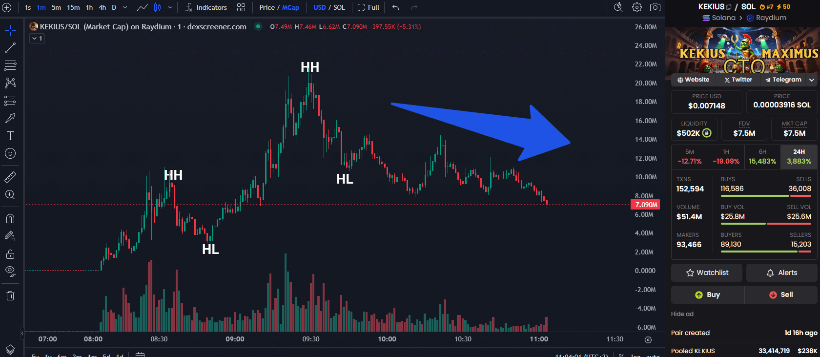 Example: A coin hits $1 million market cap on launch day, then dips to $800,000. That’s often a safer entry point if the volume is still strong.