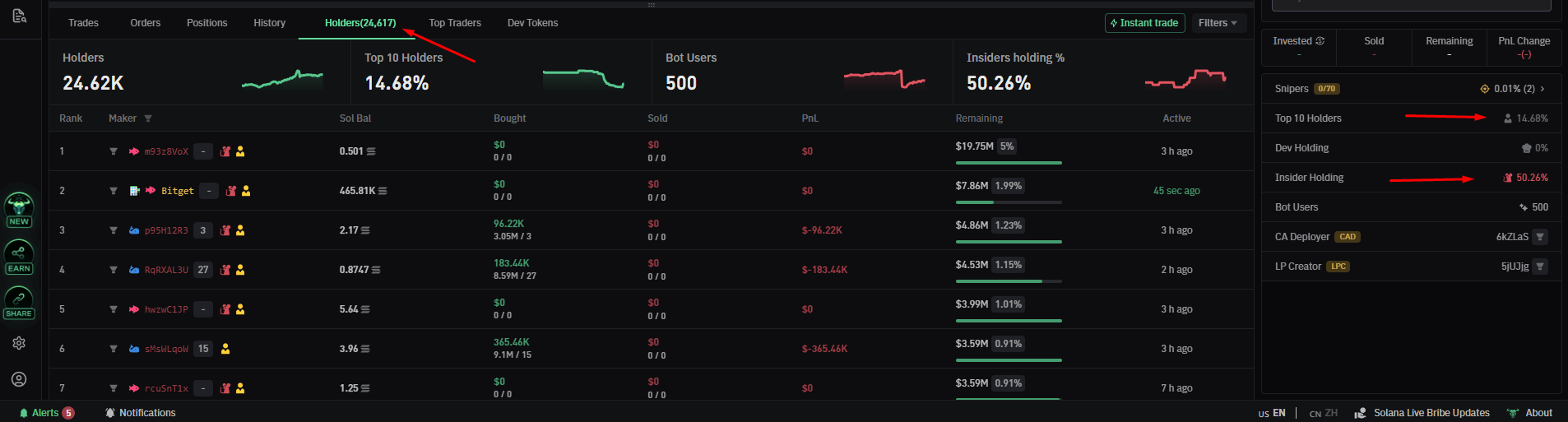 Check the Contract: Use BullX Neo to analyze the top holders.